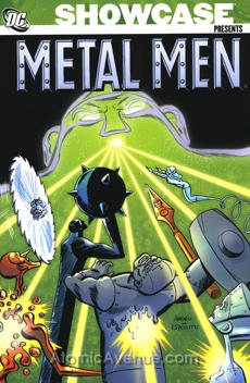 Reprints Brave and the Bold #66; 1st appearance of Dr. Yes; 1st appearance of Professor Bravo; 1st appearance of Plastic Perils; 1st appearance of Ethylene; 1st appearance of Styrene; 1st appearance of Silicone; 1st appearance of Methacrylate; 1st appearance of Polyethylene; 1st appearance of Sizzler; 1st appearance of Professor Snakelocks; 1st appearance of Balloon Man; 1st appearance of King Dymond; 1st appearance of Silver; 1st appearance of Cobalt; 1st appearance of Zinc; 1st appearance of Osmium; 1st appearance of Gallium; 1st appearance of Iridia; 1st appearance of Iridium; 1st appearance of Darzz; 1st appearance of Robot Amazons; 1st appearance of David Magnus; 1st appearance of Fferka; 1st appearance of Professor Kurt Borian; Death of Sizzler; Origin of Metal Men; Metal Men #16-35; Trade papeback; 528 pages; B&W