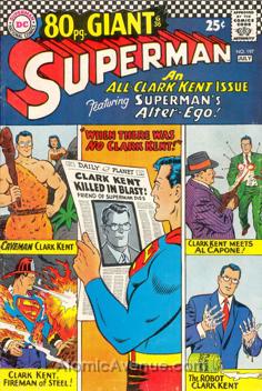 Reprints from Action Comics #169, 189, 269, 282, Superman #127, 129, 142; All Clark Kent issue; Giant-size; Superman