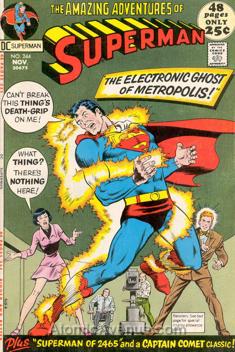 Title changes to The Amazing Adventures of Superman; Reprints Superman #181, and Strange Adventures #34; The Lady or the Tiger-Man reprinted from Strange Adventures #34; The Superman of 2465! reprinted from issue #181, changed from 2965