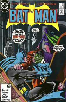 Versus Two-Face (Harvey Dent); UPC box displays: “Abby’s in Gotham City in Swamp Thing #51”