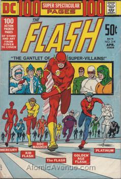 Reprints Showcase #37, Flash #145, 155, National Comics #67, Flash #122, Adventure #179, Metal Men: Showcase #37; Origin of Metal Men; DC 100-Page Super Spectacular #11