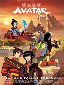 The Avatar: The Last Airbender—Fire and Family Treasury Library Edition hardcover collects the standalone comics stories Azula in the Spirit Temple, The Bounty Hunter and the Tea Brewer, and Ashes of the Academy. Featuring cover art from Peter Wartman as well as a bonus sketchbook section.