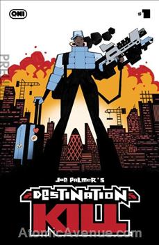 THE FUTURE IS A RIOT! In the footsteps ofJUDGE DREDD, V FOR VENDETTA, andTANK GIRL, the first great milestone in 22nd-century science fiction is here! Written, illustrated, and hand-lettered by British comics virtuoso Joe Palmer (Time Before Time), DESTINATION KILL is powered by the thrum of a million gigawatts of nonstop visual firepower… as rendered by one of the most incendiary visual storytellers in comics today. The year is 2125, and the all-powerful corporation Overcon uses its robot workers to pour our drinks and dispense our meds, all while rebuilding London’s Central City into a hyper-modern megalopolis bolted together in its own image. But as Overcon prepares to celebrate the first year of its Paradise Loop—a superfast transatlantic train that connects the Central City to New York in under 60 minutes—an unwieldy army of displaced human workers floods the streets with weapons, plotting an attack at the anniversary gala. Enter: Gina Serene, a stressed-out, pill-popping police detective in desperate need of a vacation and her ex-partner turned P.I., Lance Wingman—who are now the only thing standing between Overcon’s skyscraper-sized fist and the worker uprising that threatens to bring Britain’s capital crashing down around them.